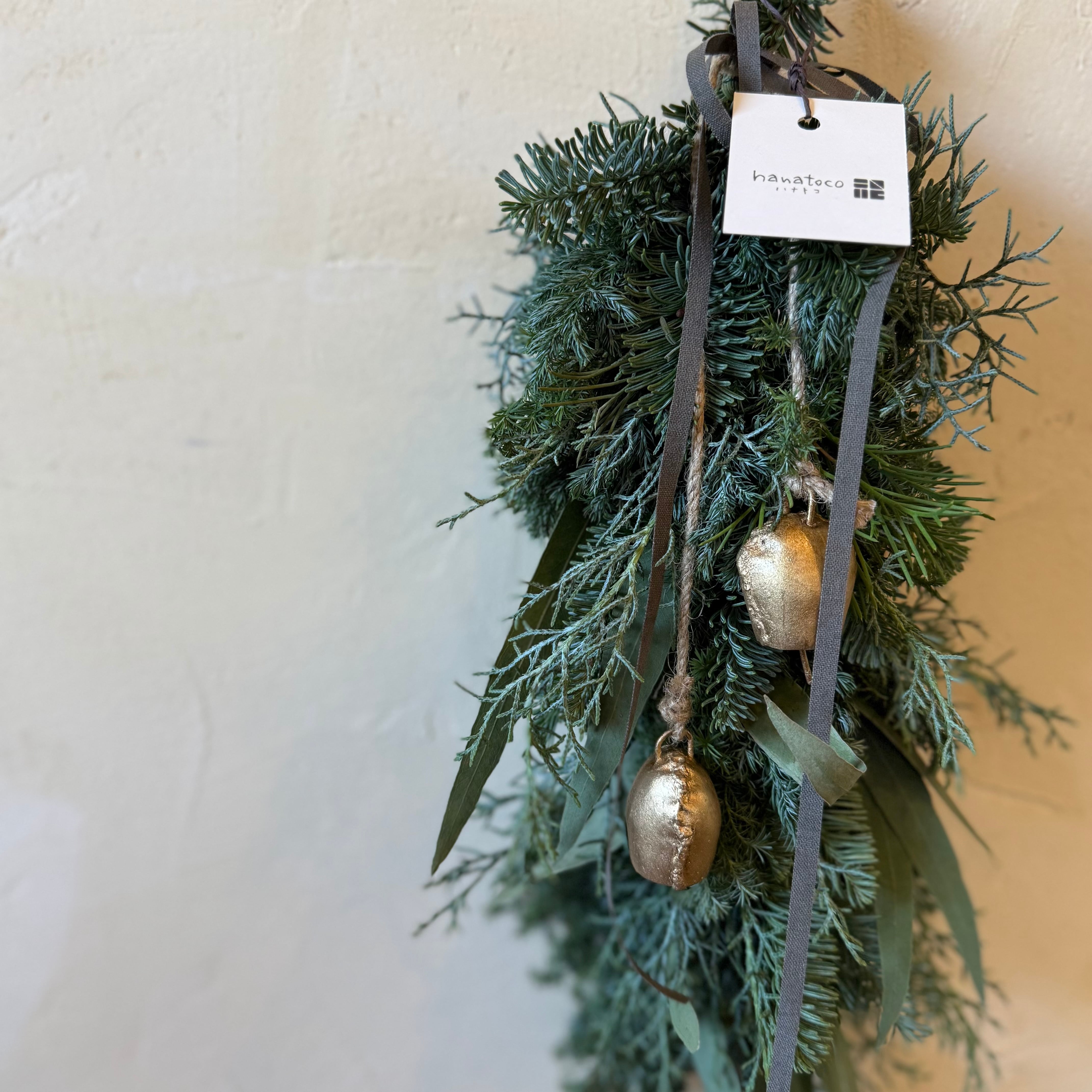 クリスマスまではフレッシュ感が続くので、お正月にも水引きなどでアレンジしても飾れるスワッグです。